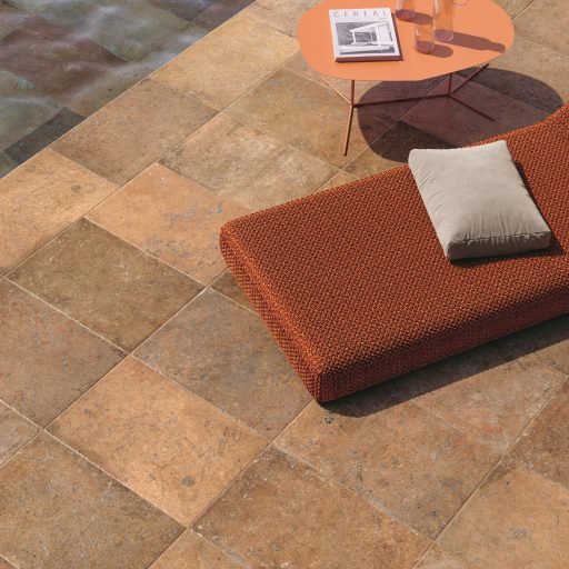 Cotto del Campiano reintroduces terracotta ceramics suitable for indoor and outdoor use, to be interpreted according to new architectural languages. With a 10 mm thick surface system, the collection displays a rich mashup of earthy colours, besides mixed cement tile decorations.