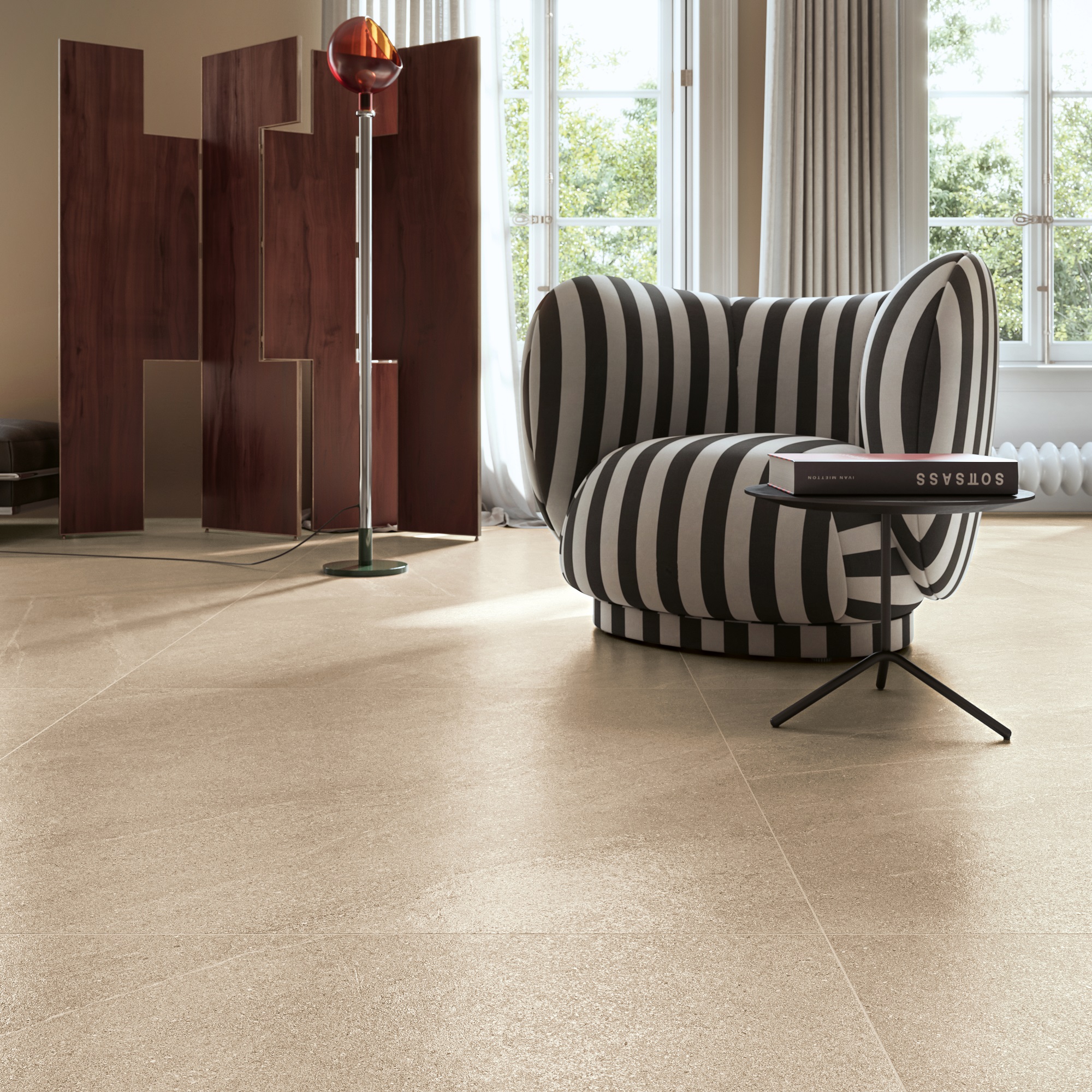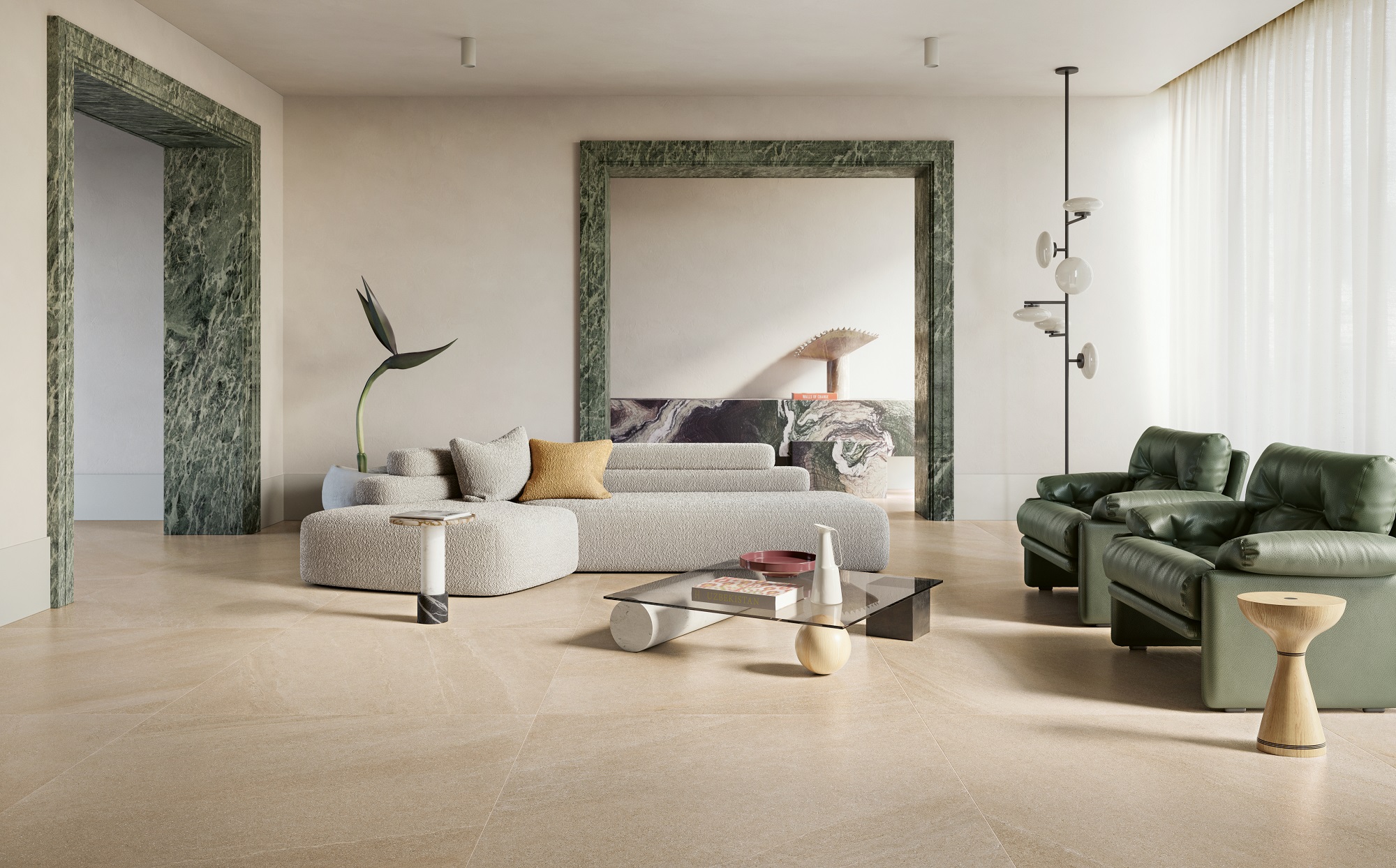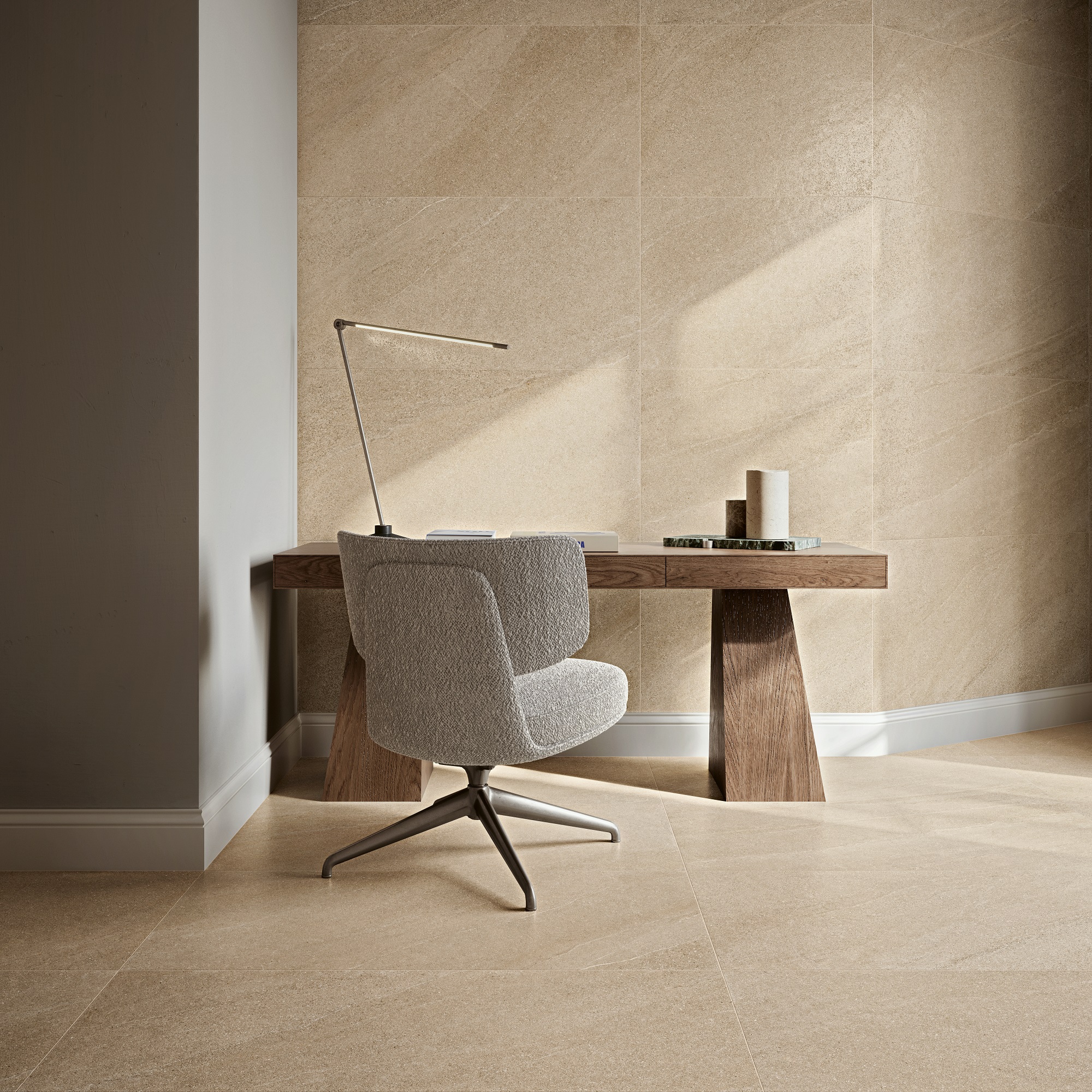 A mix of sand, beige and ivory shades, with hints of orange. A warm and intimate mineral backdrop, where one can stage sophisticated environments characterized by a few elements whose colours and materials are well-coordinated.