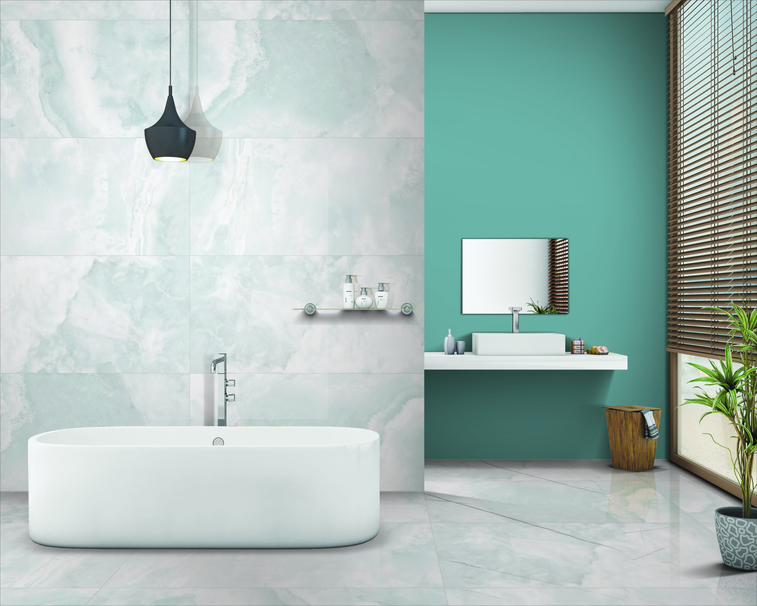 With a smooth glossy surface, these large-format porcelain tiles reflect light at varying angles, emulating the radiance of real Onyx. Offering a luxurious and contemporary feel, these jewel-effect tiles are becoming a popular choice for the style-conscious homeowner.