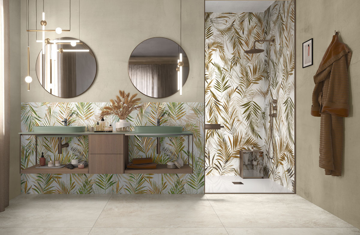 A unique collection of decorated ceramic slabs capable of combining the typical aesthetic styling of wallpaper with the qualities of porcelain stoneware.