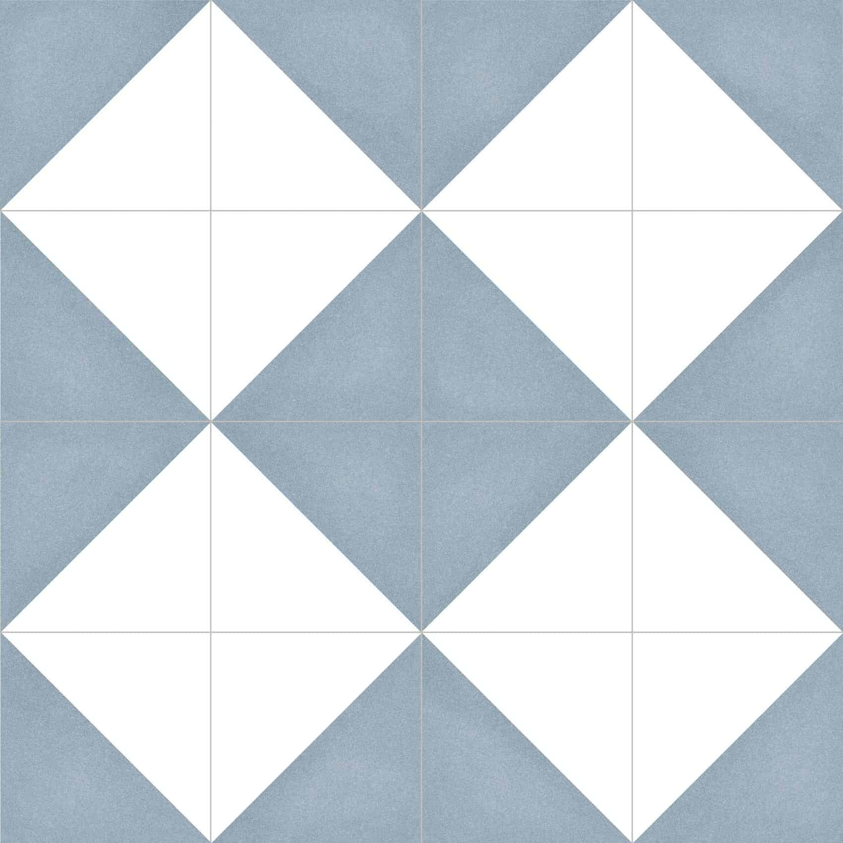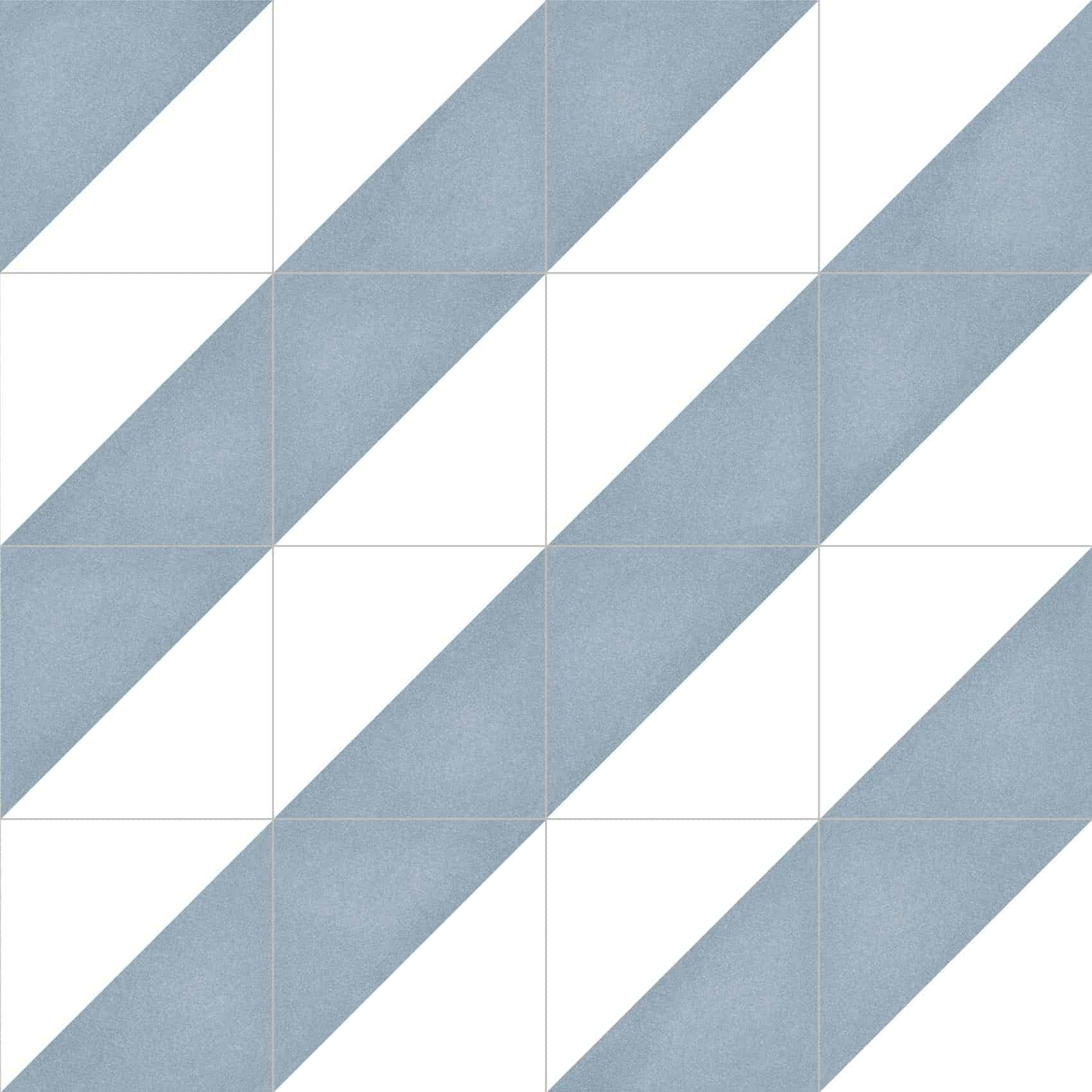 Let your creative flair run free with the Tre collection. Tre is a simple but characteristic tile split into two triangles with white and a complementing colour.
