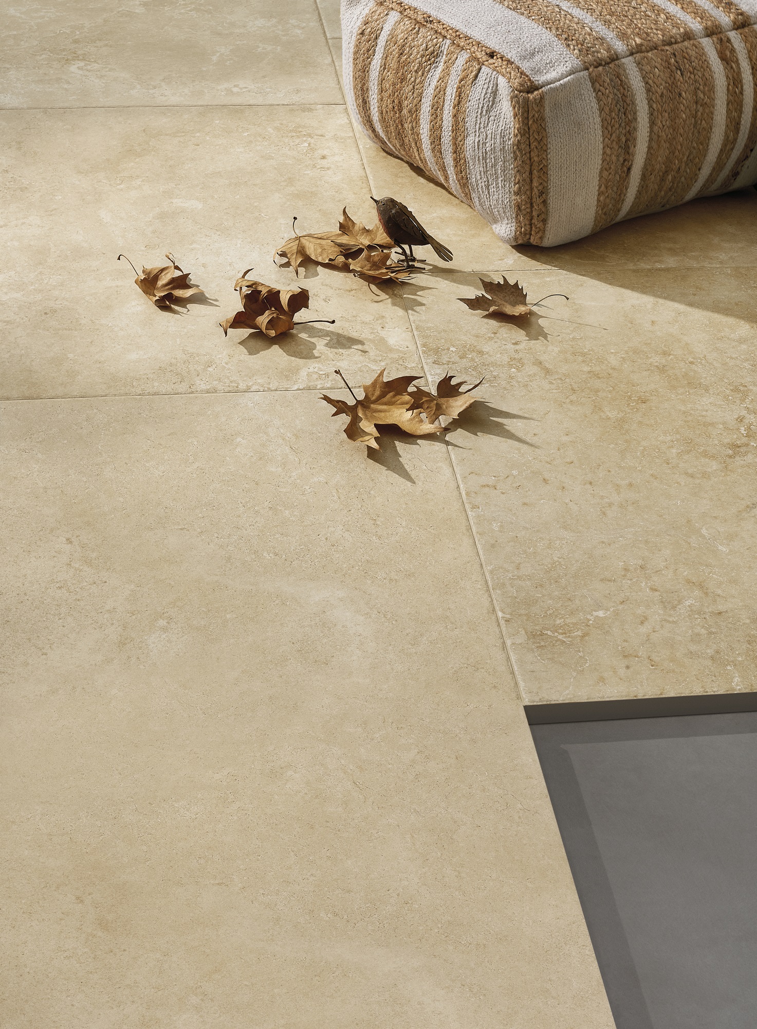 Natural stone is reinterpreted in its most authentic and elegant way through a precious selection of light and relaxing shades and a wise balance of light graphics and edges showing an antique effect.