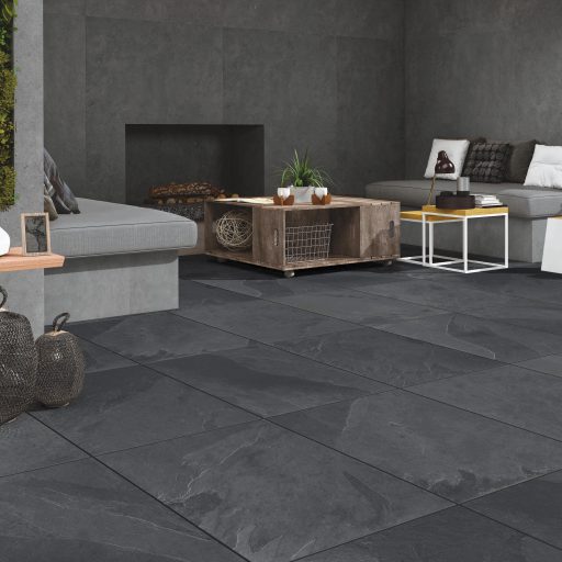 A modern twist on a natural slate, this porcelain tile delivers a clean cut design with an indistinct pattern. Creating an overall contemporary look with a hint of tradition is easily achieved