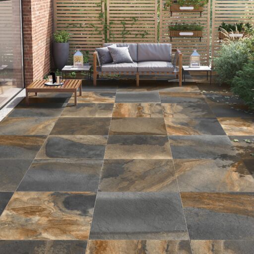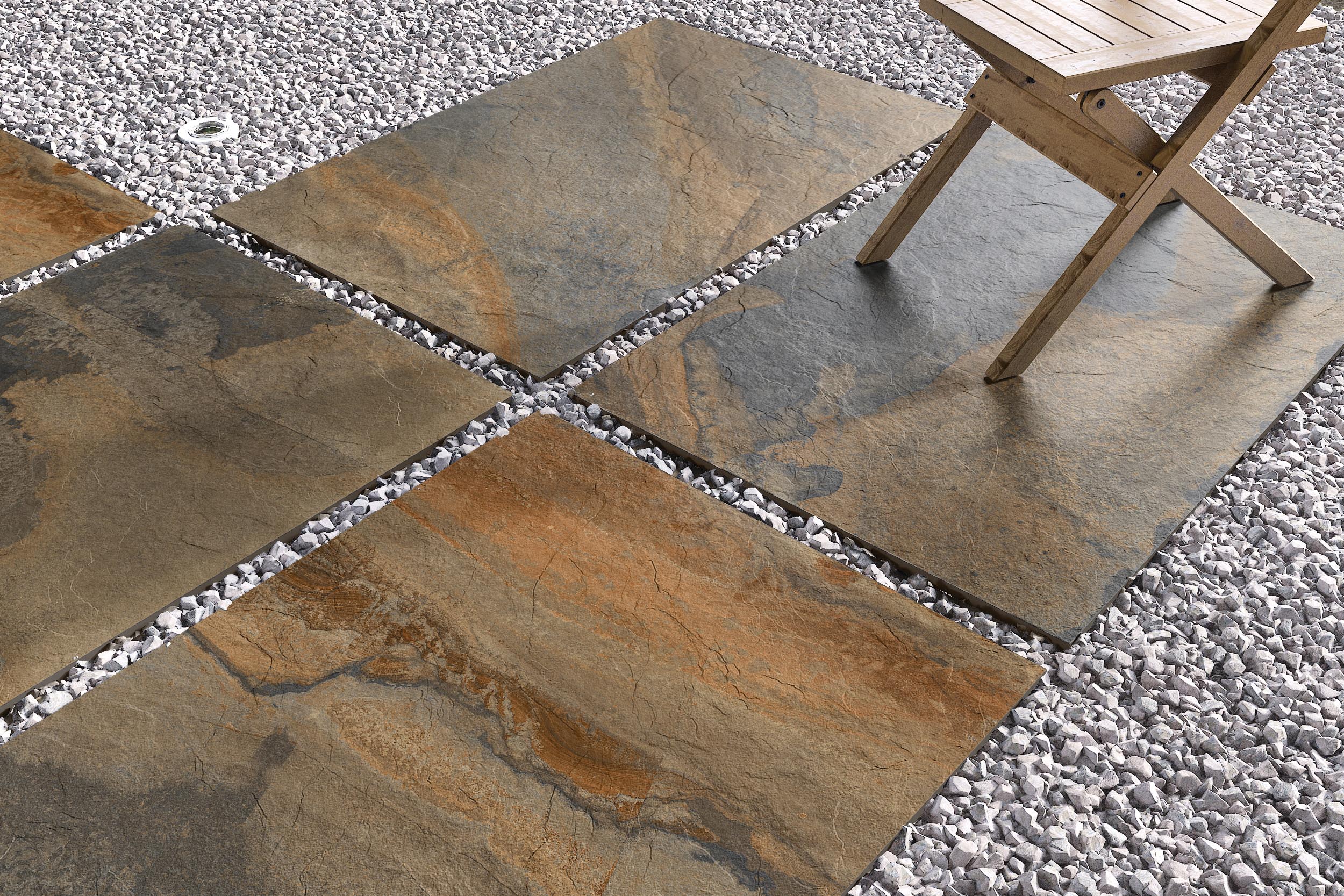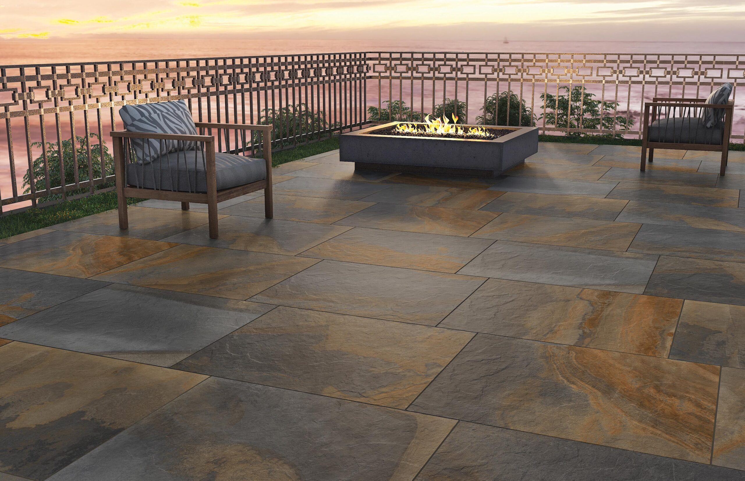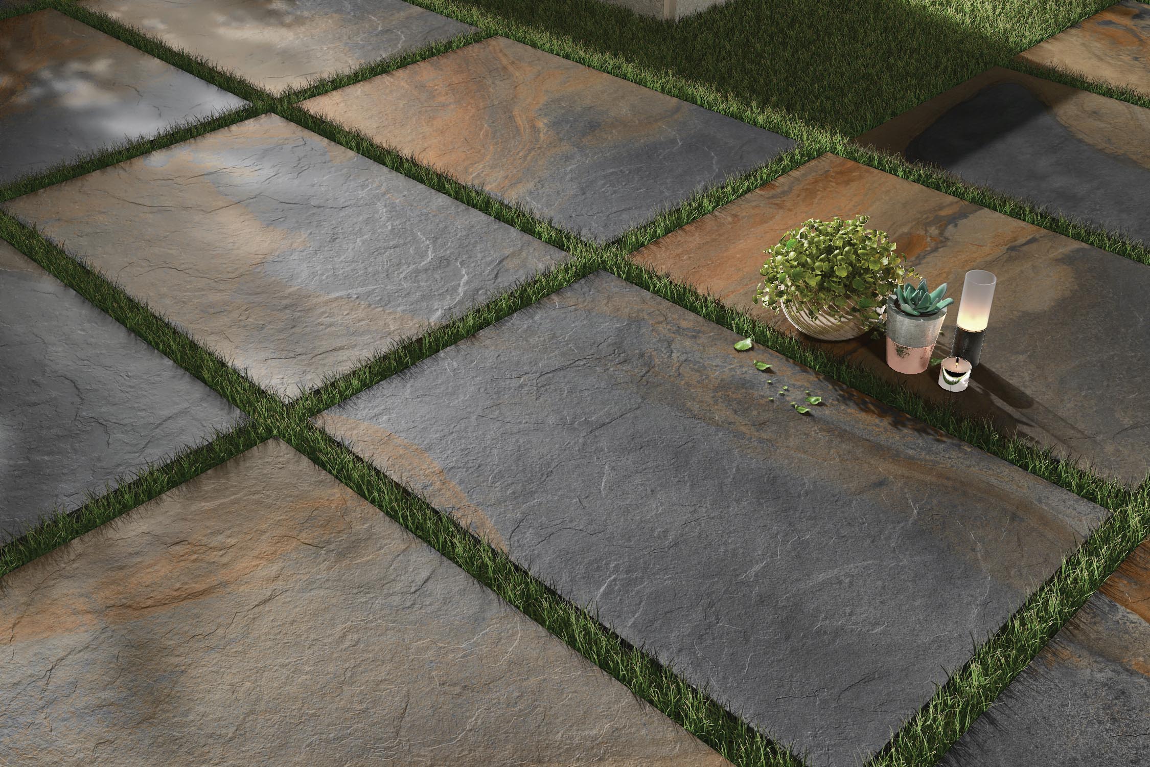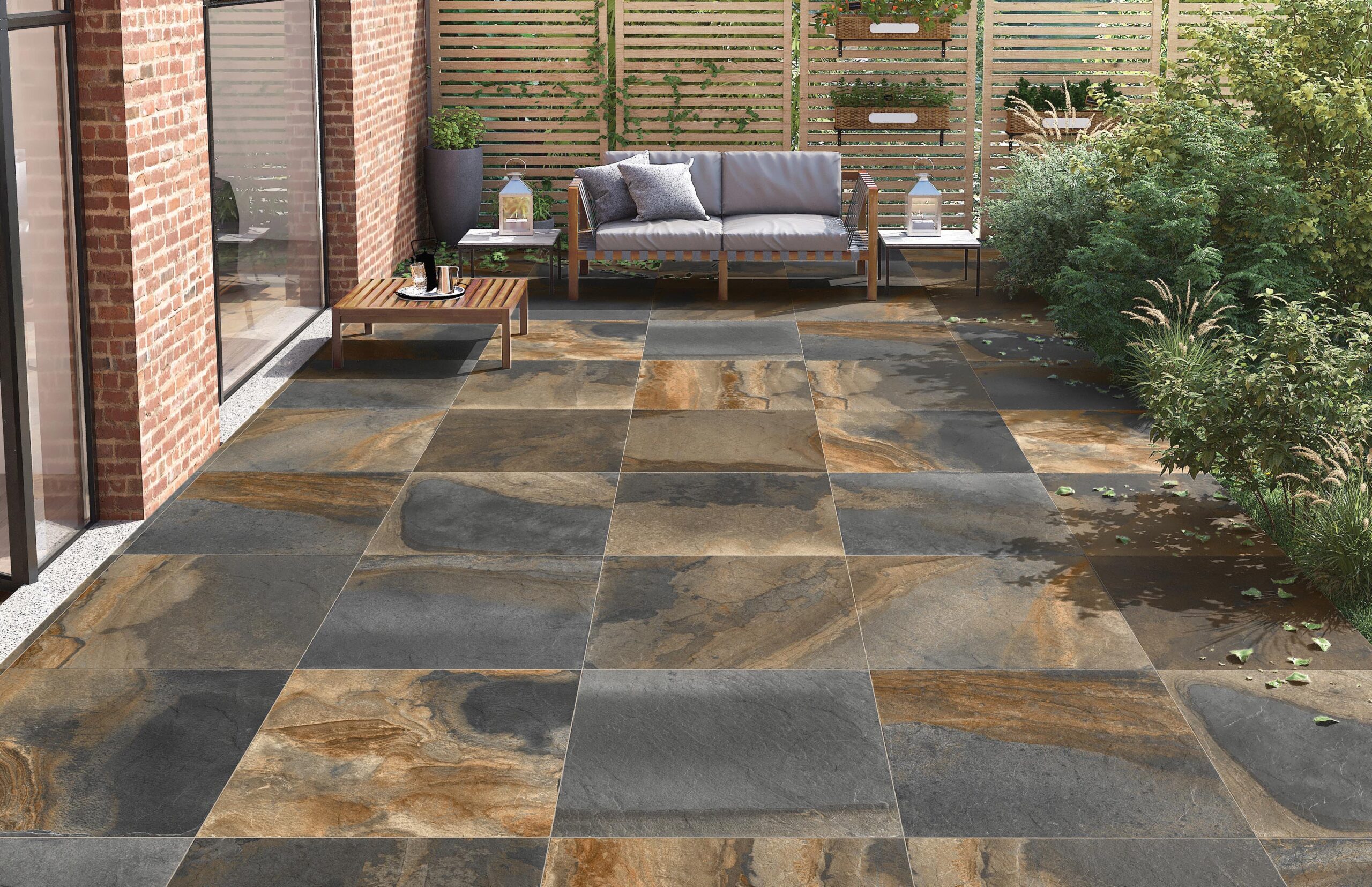 A modern twist on a natural slate, this porcelain tile delivers a clean cut design with an indistinct pattern.