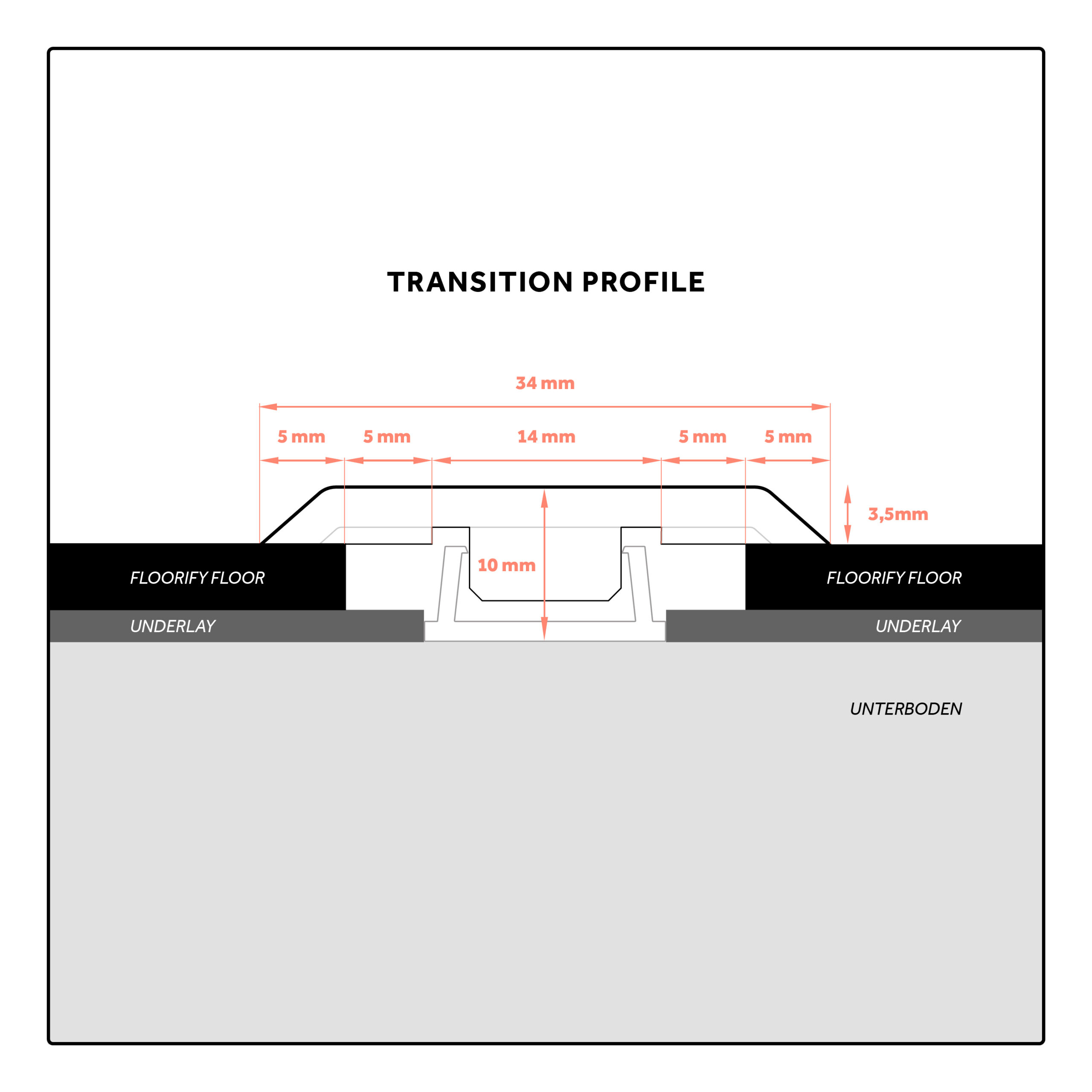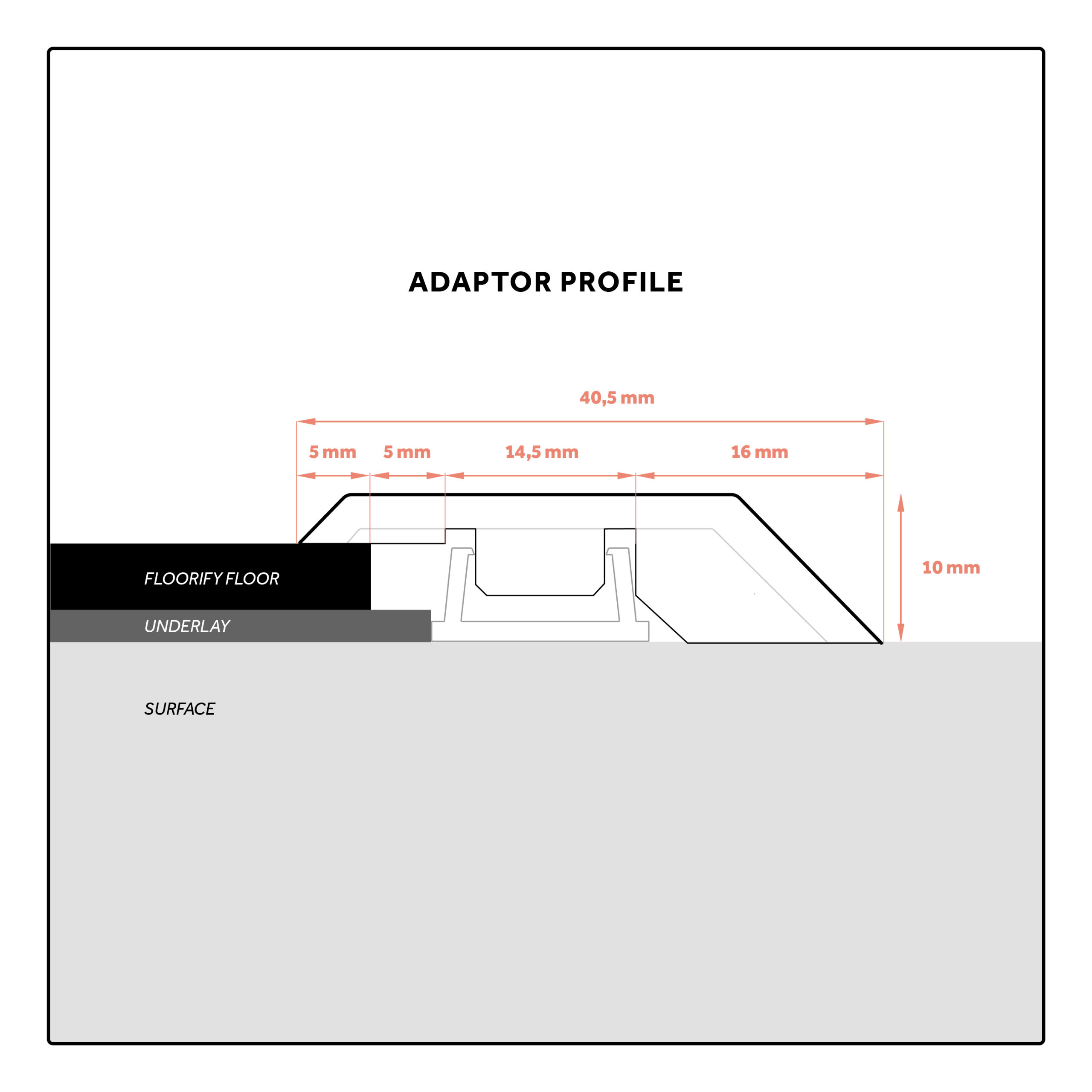 With the Floorify adaptor profile, you can quickly and easily finish your floor. It allows you to neatly bridge the height difference of 5.5 mm to 6.5 mm between two rooms.