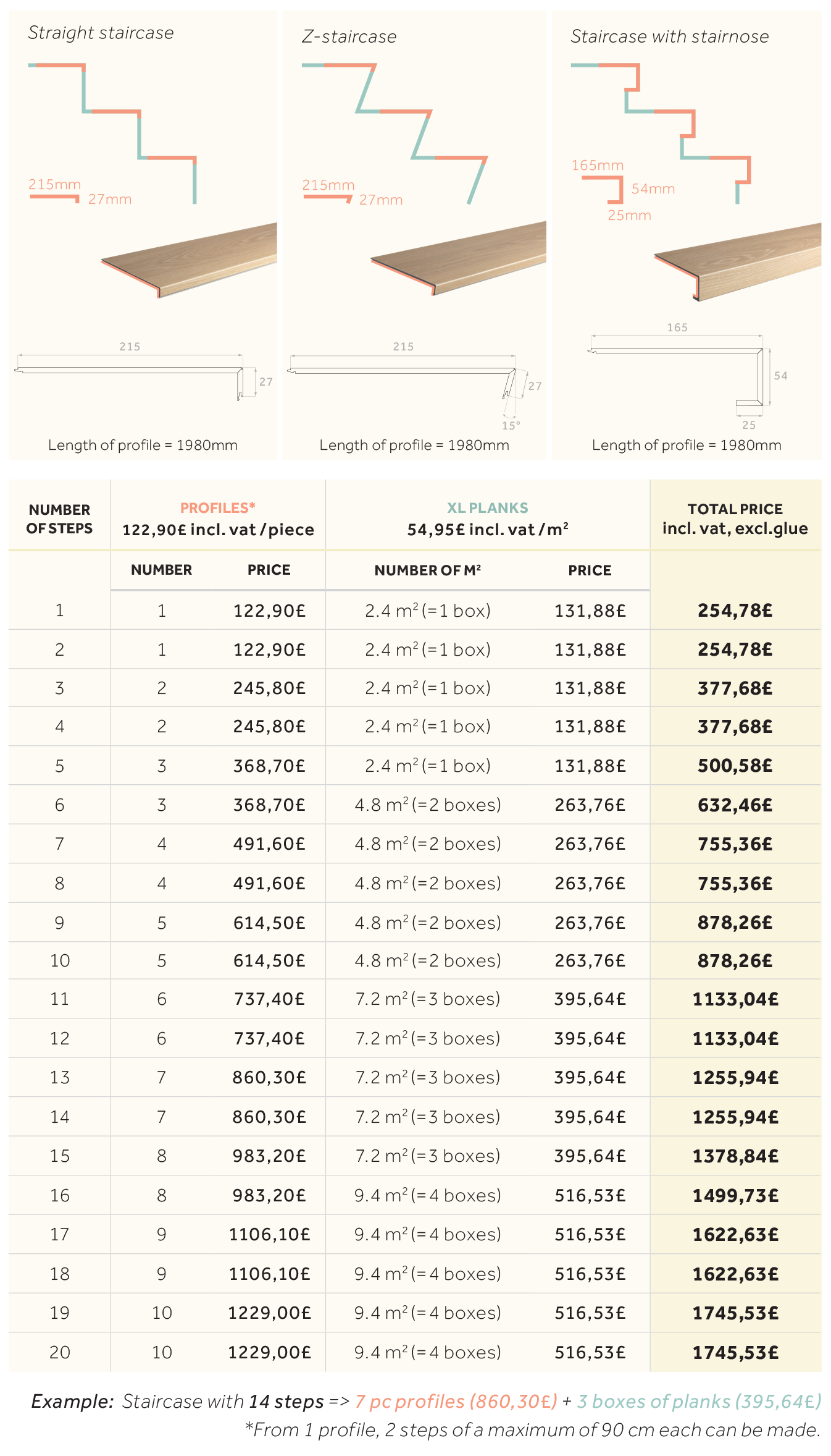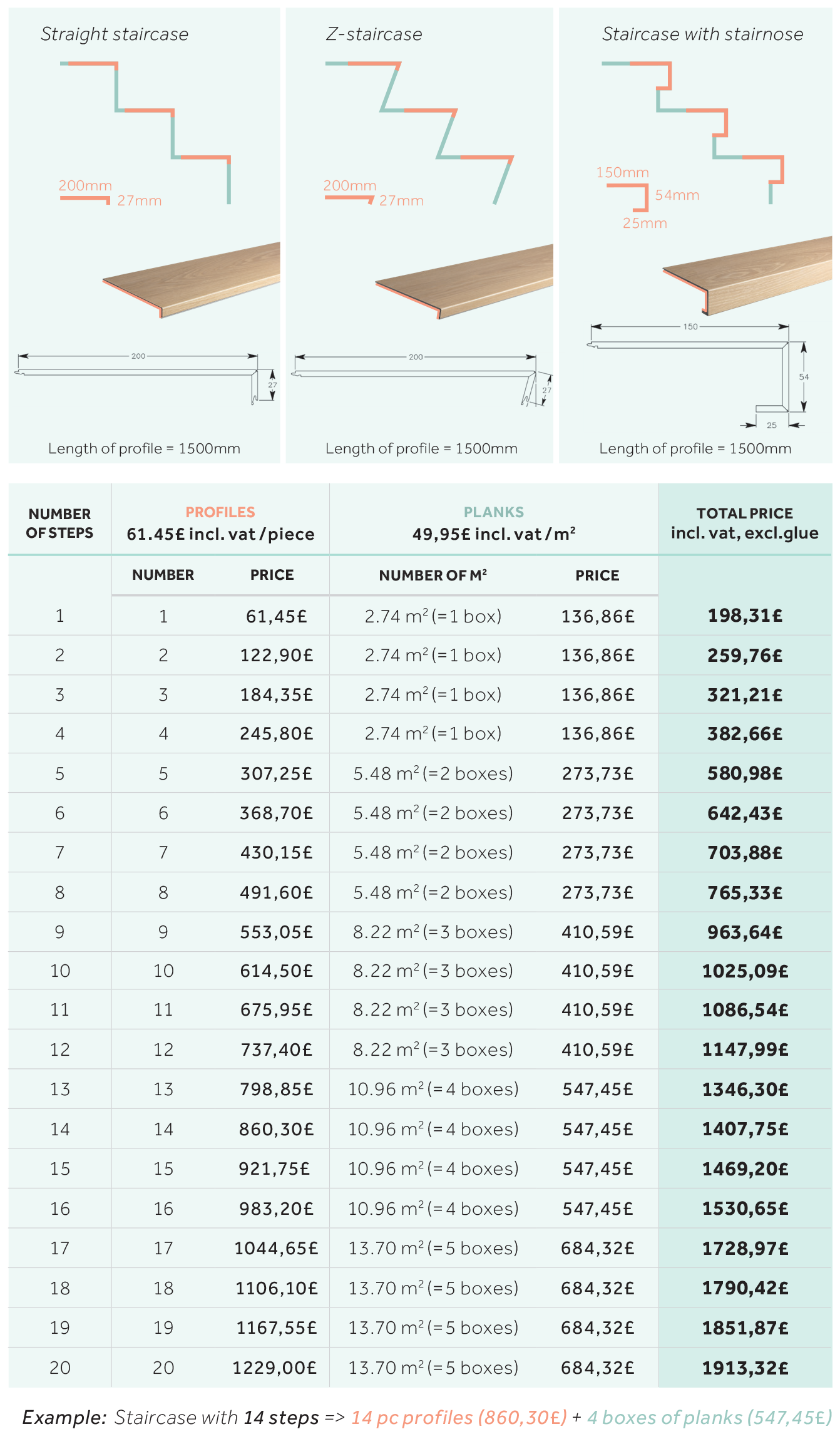 The guide below will also show you how many matching Planks you will need to cover your number of steps.