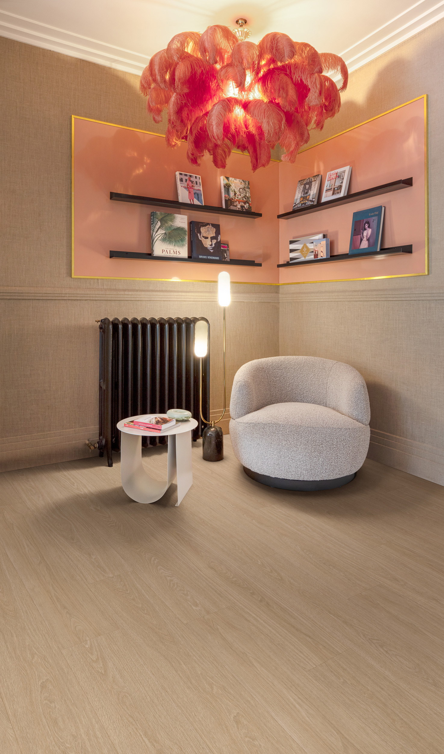 Floorify floors are water resistant. Not just a bit, completely. Let your living space, bathroom and bedroom seamlessly merge into one another: Floorify is at home everywhere.