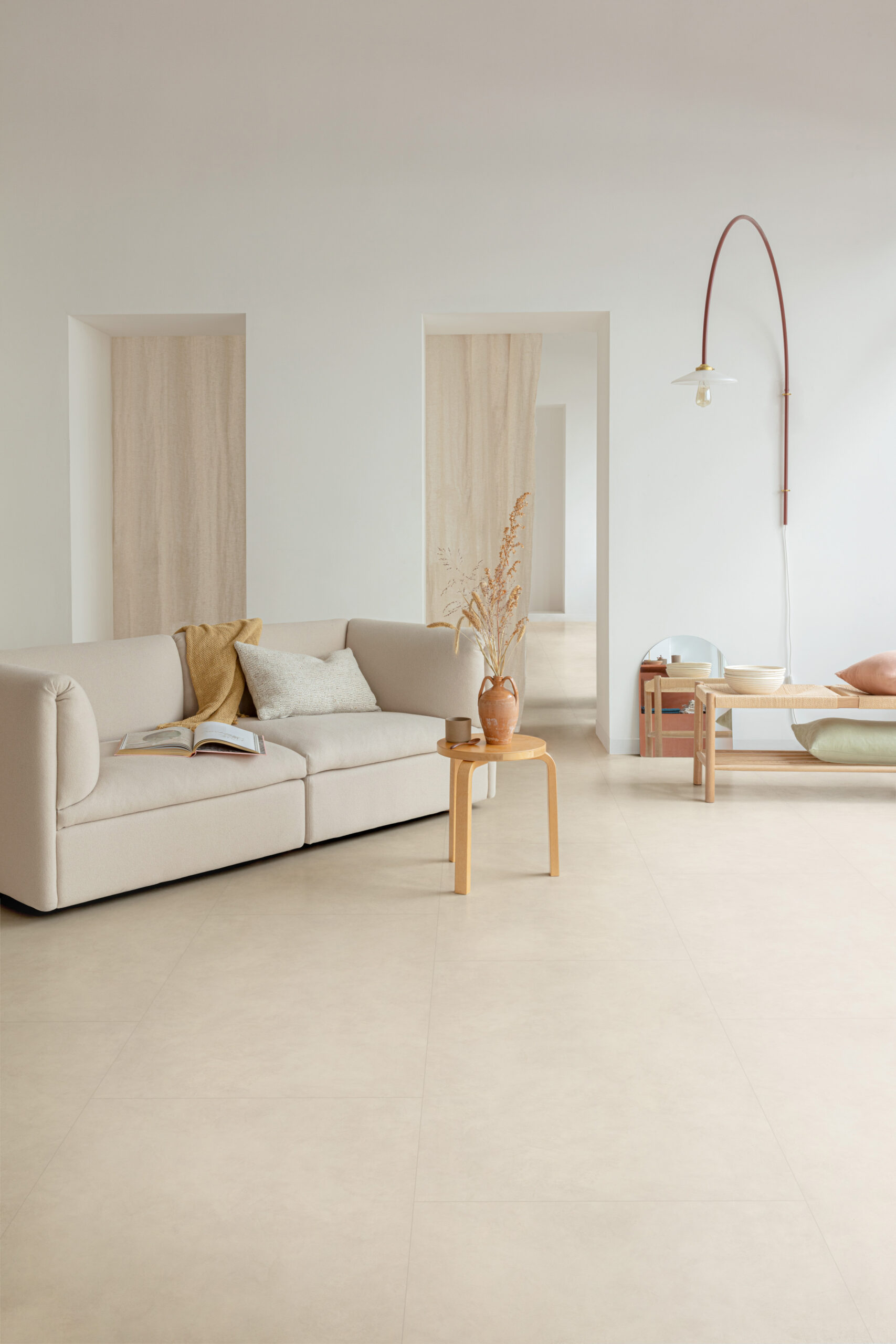 Experience peace and style in your interior with Floorify Jellyfish Rigid Vinyl Tiles. The warm beige colour of these tiles gives every room a cosy ambience, with a subtle nod to the industrial look of concrete. These tiles bring a sense of lightness and tranquillity to any space.