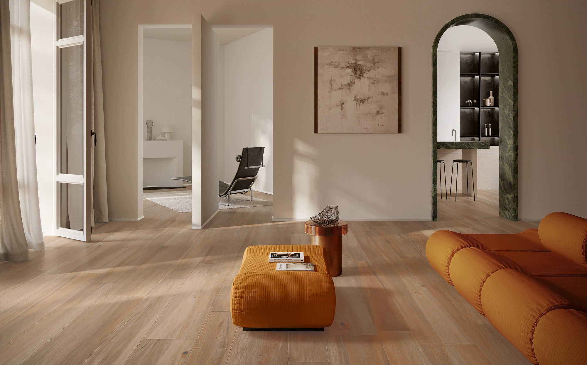 The millenary charm of Holm Oak, a tree that emanates a timeless sacredness, generated by a sophisticated wood effect, characterised by an intimate and essential elegance. Smooth and captivating surfaces recreate places that feed the soul, dedicated to those who revel in the discovery of an authentic contact with their being.